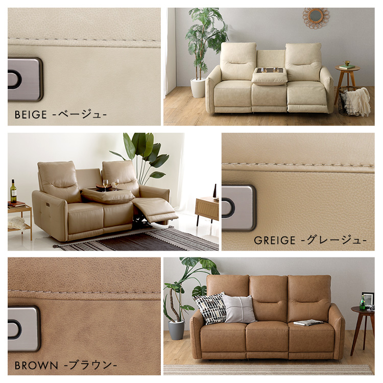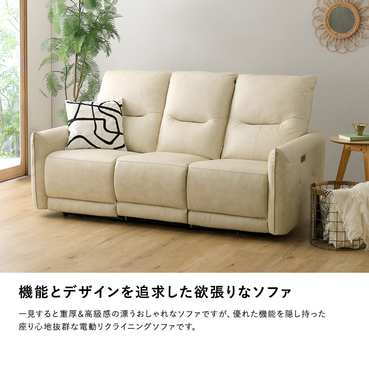 イタリアンレザー 3人掛け電動ソファ 【Kaela-カエラ-】