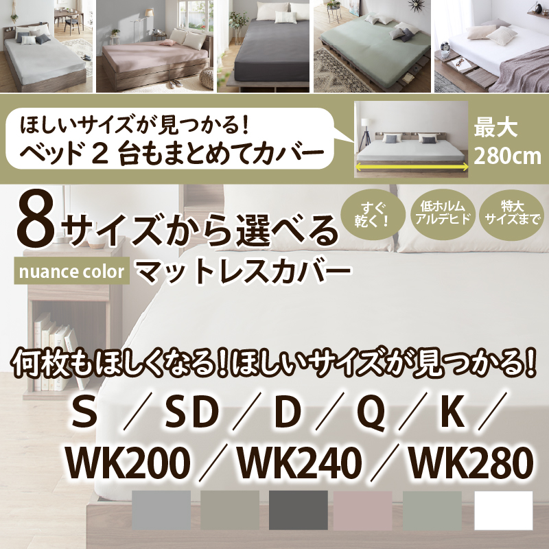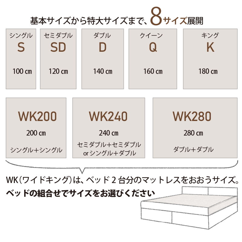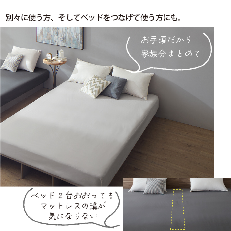 WK(ワイドキング)は、ベッド2台分のマットレスをおおうサイズ。