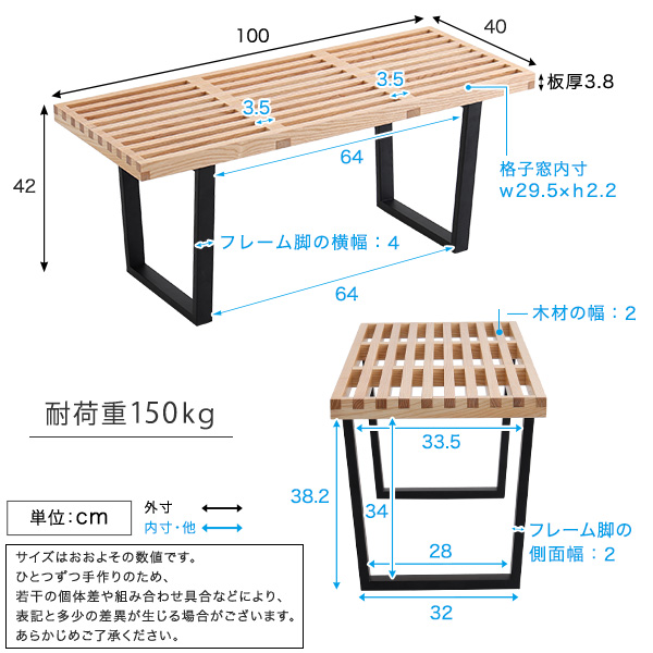 また、オリジナルのデザインベンチよりも座面を5cm高くし、ダイニングテーブルなどと一緒に使っていただけるサイズにしました。