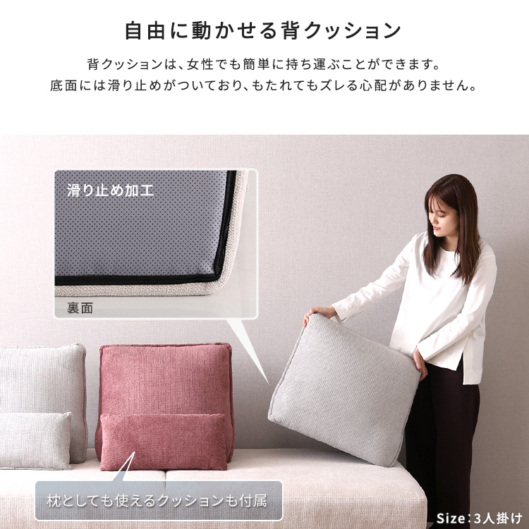 背クッションは自由に動かすことが出来るので、ライフスタイルに合わせてお好きな位置に配置して使用いただけます。
