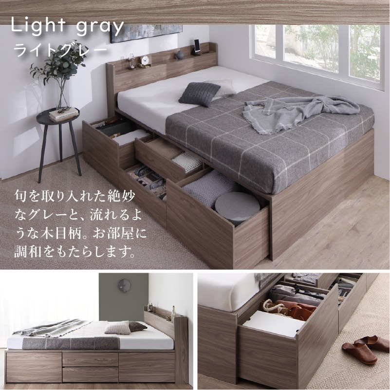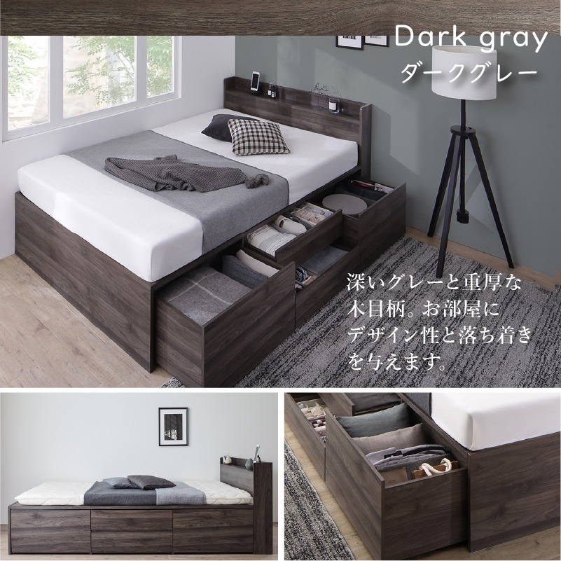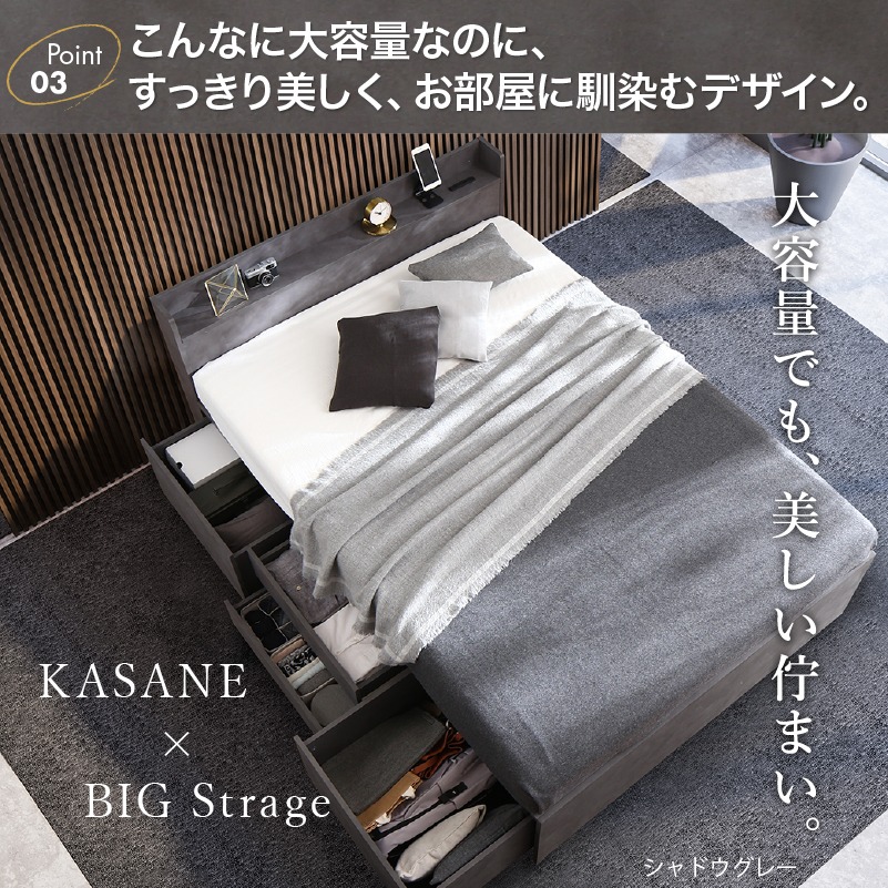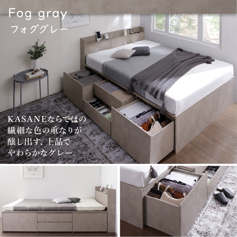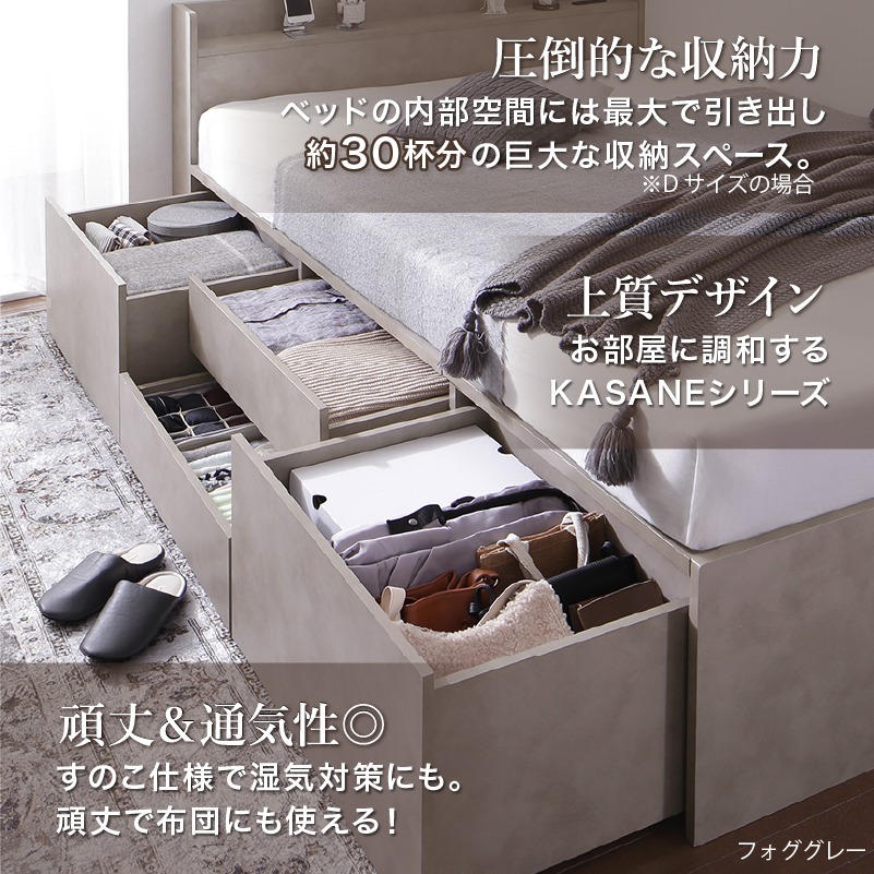 引き出し4杯 天然木調 大容量収納すのこチェストベッド【KASANE】