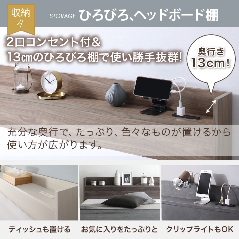 奥行13cmヘッドボード棚