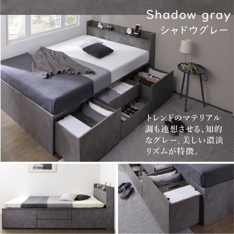 引き出し4杯・隠し収納スペース・棚・コンセント付・すのこ